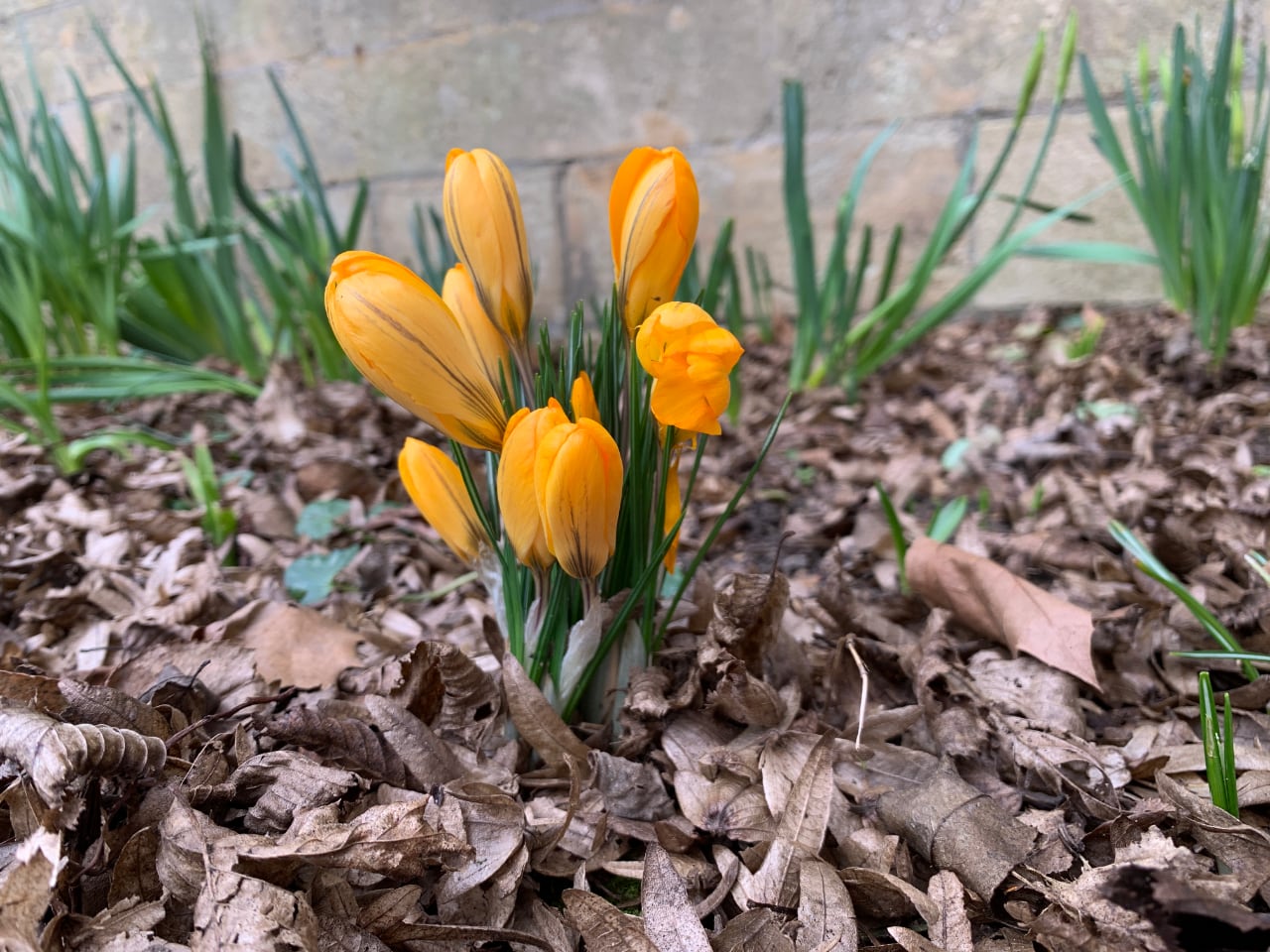Crocuses grow low to the ground but offer bright pops of colour, ranging from chrome yellow, to light lilac and even variegated petals. They arrive soon after snowdrops and tend to be less hardy. Often decimated by hard rain, they may not last as long, but are beautiful nonetheless.